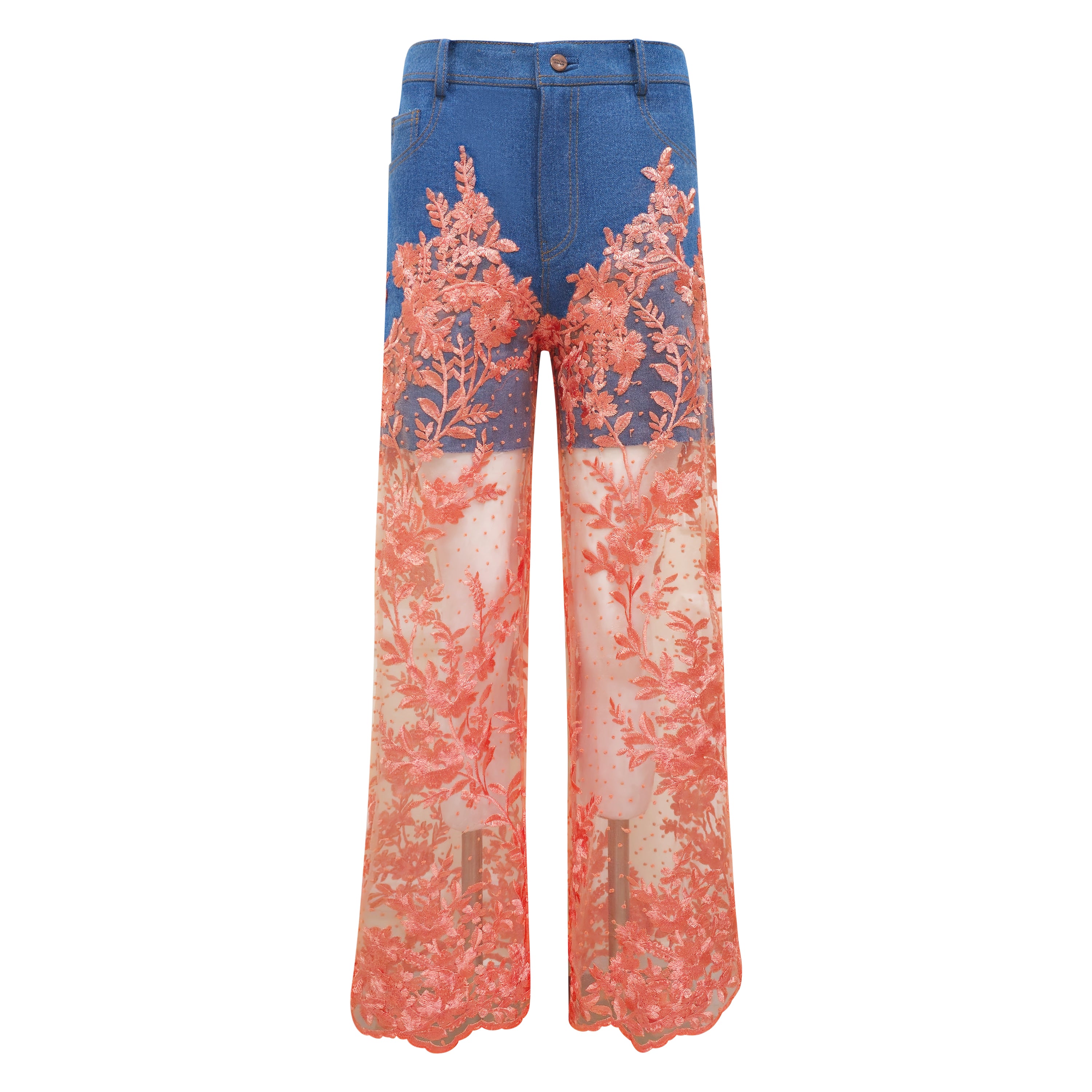 Signature denim fancy cullote pant with salmon lace #3
