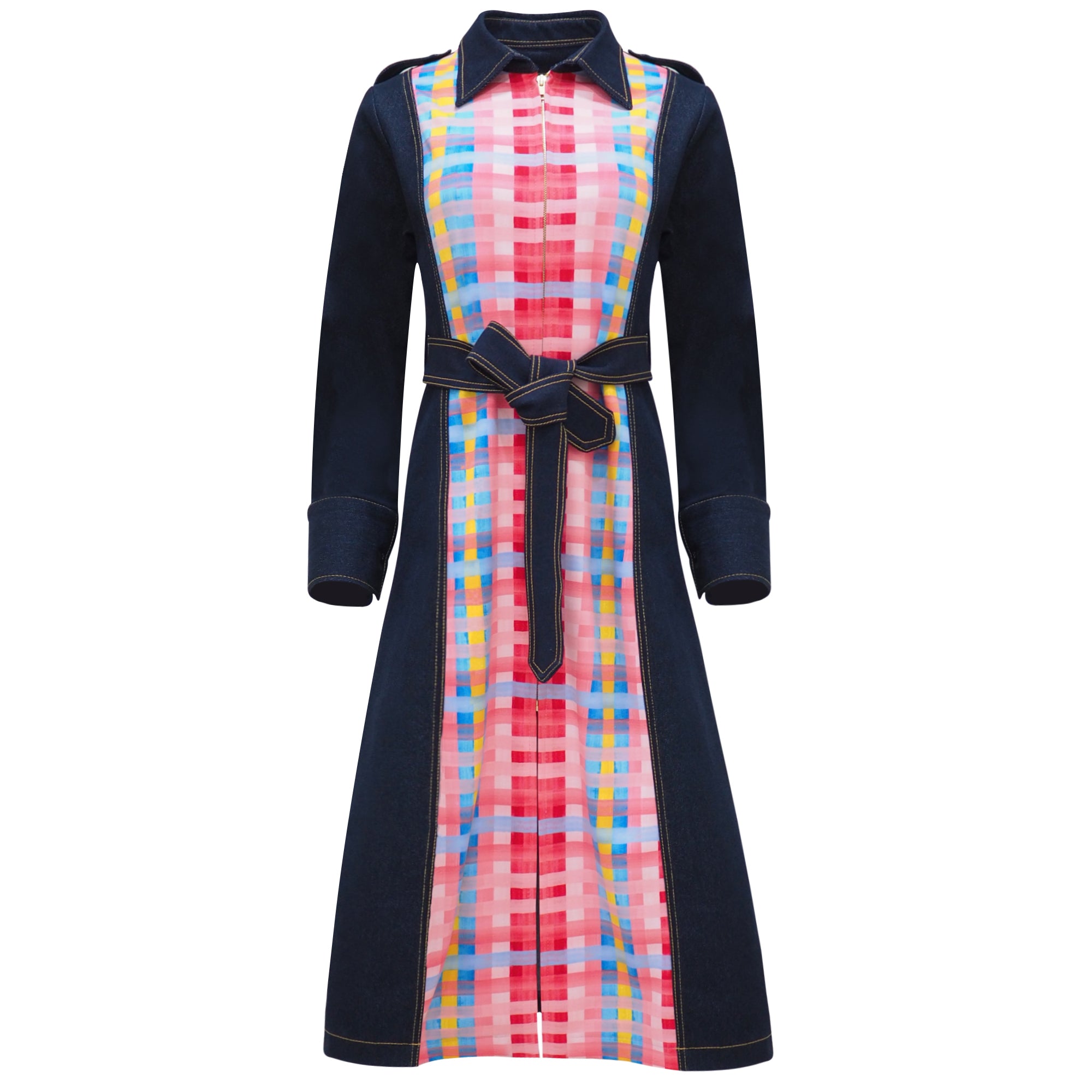 Jaket panjang dengan motif gingham yang cerah sehingga terlihat menarik dan tampil penuh gaya. Jaket yang stylish dengan bentuk melebar pada bagian bawah memberikan kesan manis. Terbuat dari bahan denim yang tebal dan kuat namun tetap terlihat elegan sehingga akan membuat lebih percaya diri pada saat digunakan. Terdapat ikat pinggang yang dapat digunakan untuk menambah aksen tersendiri sesuai keinginan.