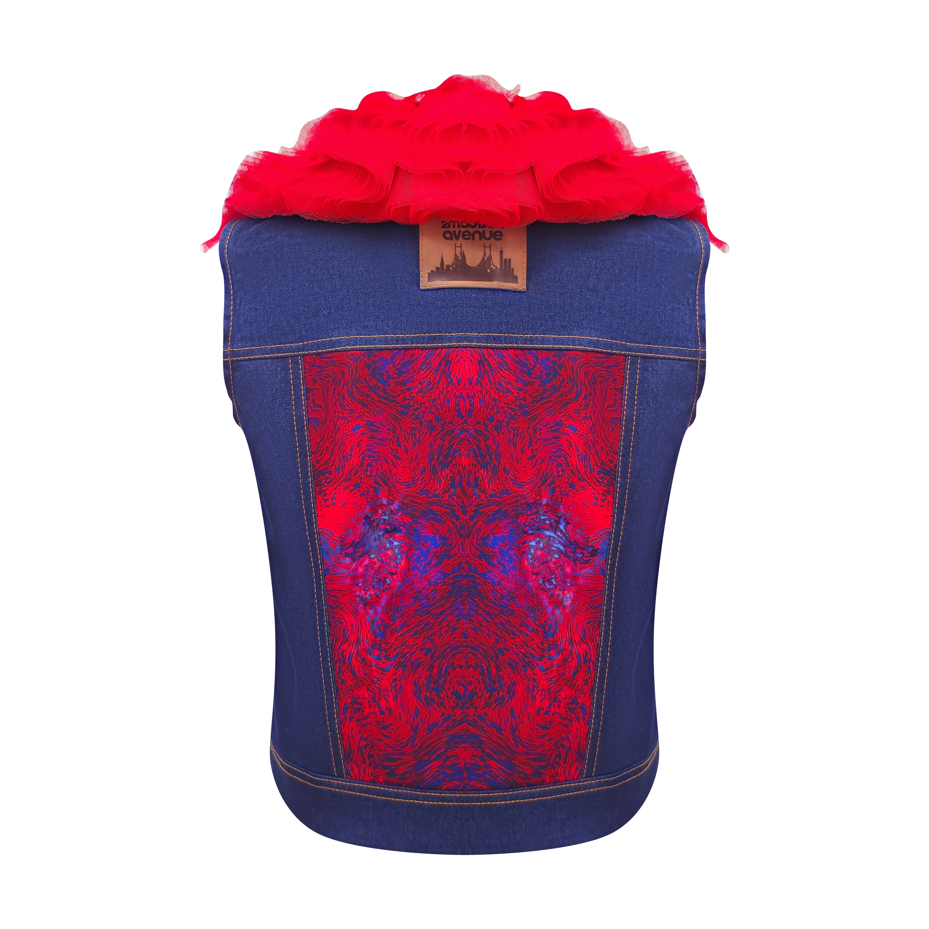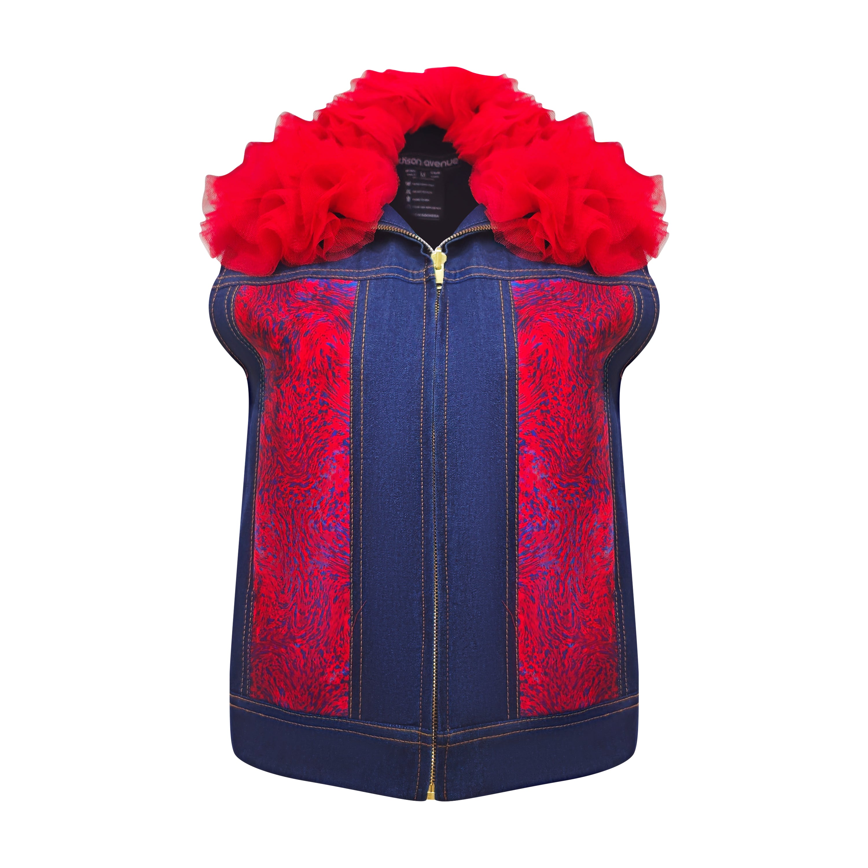 Moxie Abstract denim fancy vest with tulle